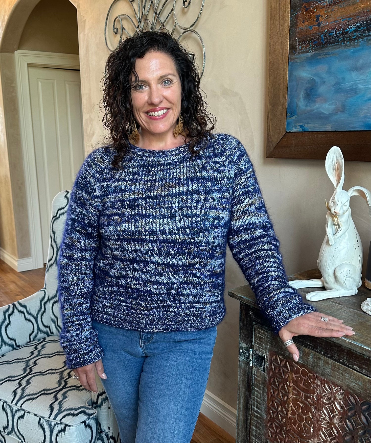 Her favorite things to knit are sweaters and socks. Her favorite crochet items include a granny square. She is still exploring her favorite spinning techniques and tools.