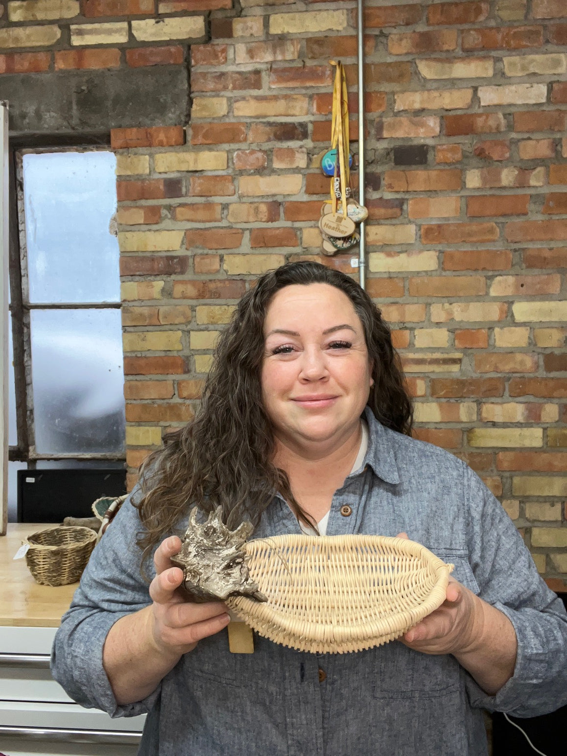 My love of texture and fibers started when I convinced our elderly neighbor to teach me to crochet as a child. I spent hours creating with yarn, wood, beads, paper, and leather. From there, it was a continuous weave of materials and techniques, adding some here, discarding there. I was a maker. I began serious practice as a basket maker in my early 20’s with local community education and fiber arts guilds. When I became a mom, I divided my time between work and my girls, so art took an intermission. Five years later, a my small daughter looked up at me and doubted my claim that I did, in fact, make the basket in her hands. She had never seen me create anything, not really, in her entire life. I made the decision in that moment that I wanted my daughters to understand all that we could do together. We made a change and I re-embraced the artist I knew myself to be. I began weaving at home, developing my own style. Then seeking out opportunities to learn wherever I could find them. My work is a blend of cultures, traditions, and technical skills. I've spent years asking questions about culture and tradition and how I represent them in my art. I live in an area surrounded by Native lands, and in fact grew up learning Ojibwe art in school, as it was the only art instruction available to me other than drawing or painting. I do not work with those art forms as they are not mine culturally. This lead me to search for, and pursue, learning traditional European weaving techniques and materials, learning from weavers from around the United States, from Spain, and Denmark. From there, I took a pilgrimage to Ireland, working with Joe Hogan, a traditional Irish basket maker turned modern artist, followed by an arts residency at Shankill Castle in Kilkenny, IE. As an American, their cultures and traditions are only ancestrally mine, though their technical aspects are now part of my practice. I blend my years of study and research into my body of work, creating my own style and techniques. I am now exploring the fusion of modern and traditional techniques with locally sourced materials as they apply to art basketry. It’s not unusual for a family excursion to include my teenagers beach combing for driftwood and interesting rocks, or into the forest to collect grasses, tree barks, antlers, and rushes. I’m moved to create unique sculptural shapes that flow with and emphasize the natural elements I’ve used as my focal points. These materials are combined with primary materials of round reed (rattan) or willow to create both sculptural pieces and those with practical uses. As an artist from a small rural area, the bridge between art and craft is a narrow one that I want to continue to explore. Art basketry falls into uncharted waters, fiber arts, mixed media, sculpture; it varies piece by piece.